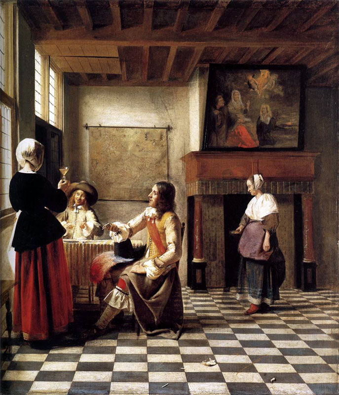 Pieter de Hooch. A Woman Drinking with Two Men, c1658.