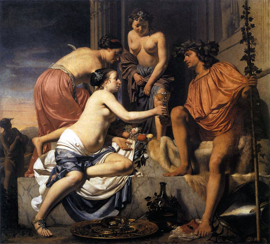 Nymphs Offering Young Bacchus Wine, Fruit and Flowers. Caesar van Everdingen, 1670-8.