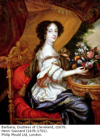 1. Duchess of Cleveland, Barbara Palmer, formerly Countess of Castlemaine.