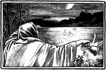 Then Lir and his people raised their shouts of grief, crying, and lamentation, and they stayed by the shore of the lake listening to the wild music of the swans until the swans flew away, and King Lir went on to the Hall of Dearg the king. He told Dearg the king what Oifa had done to his children. And Dearg put his power upon Oifa and bade her say what shape on earth she would think the worst of all. She said it would be in the form of an air-demon. "It is into that form I shall put you," said Dearg the king, and he struck her with a Druid's wand of spells and wizardry and put her into the form of an air-demon. And she flew away at once, and she is still an air-demon, and shall be so for ever.